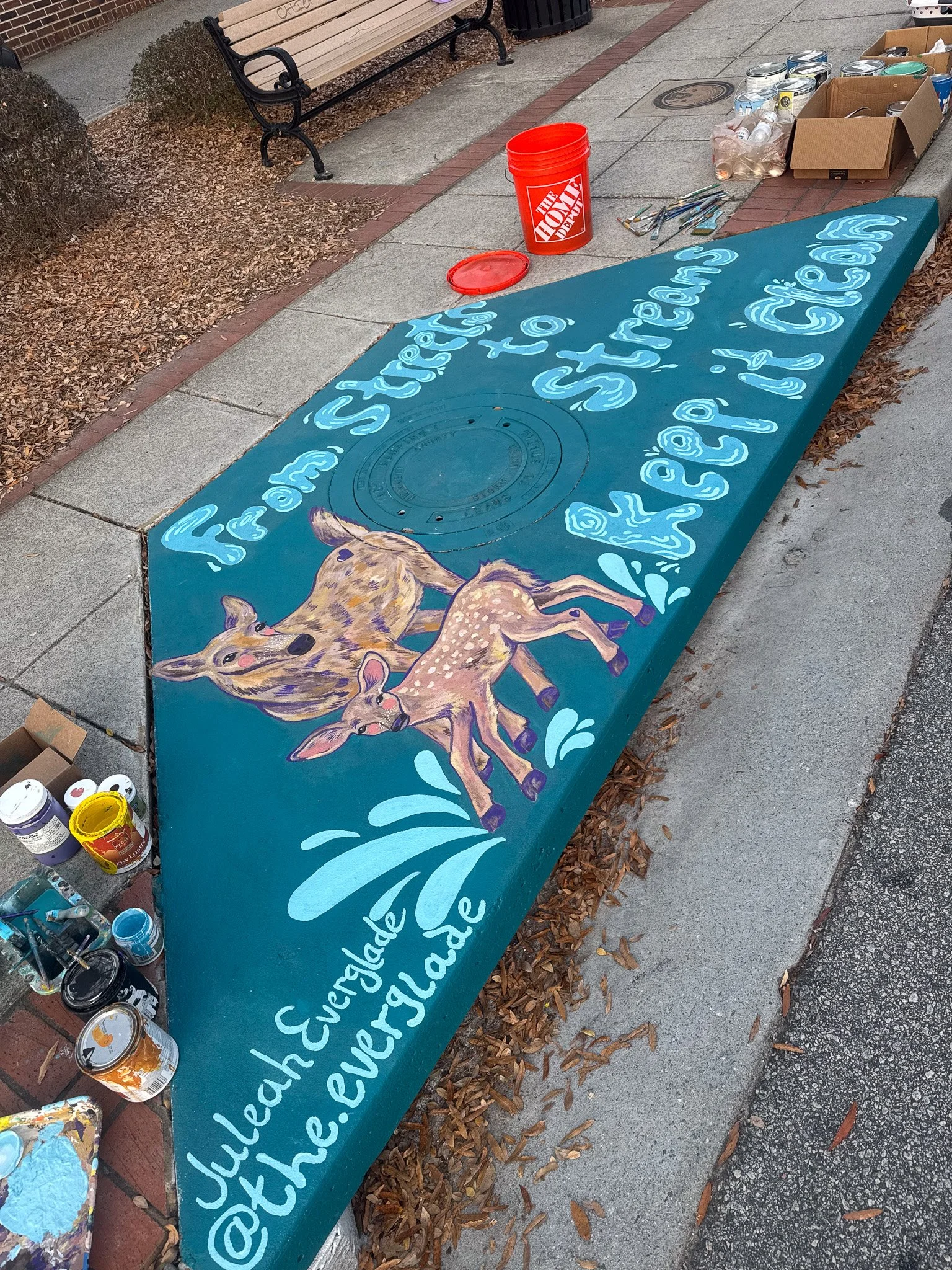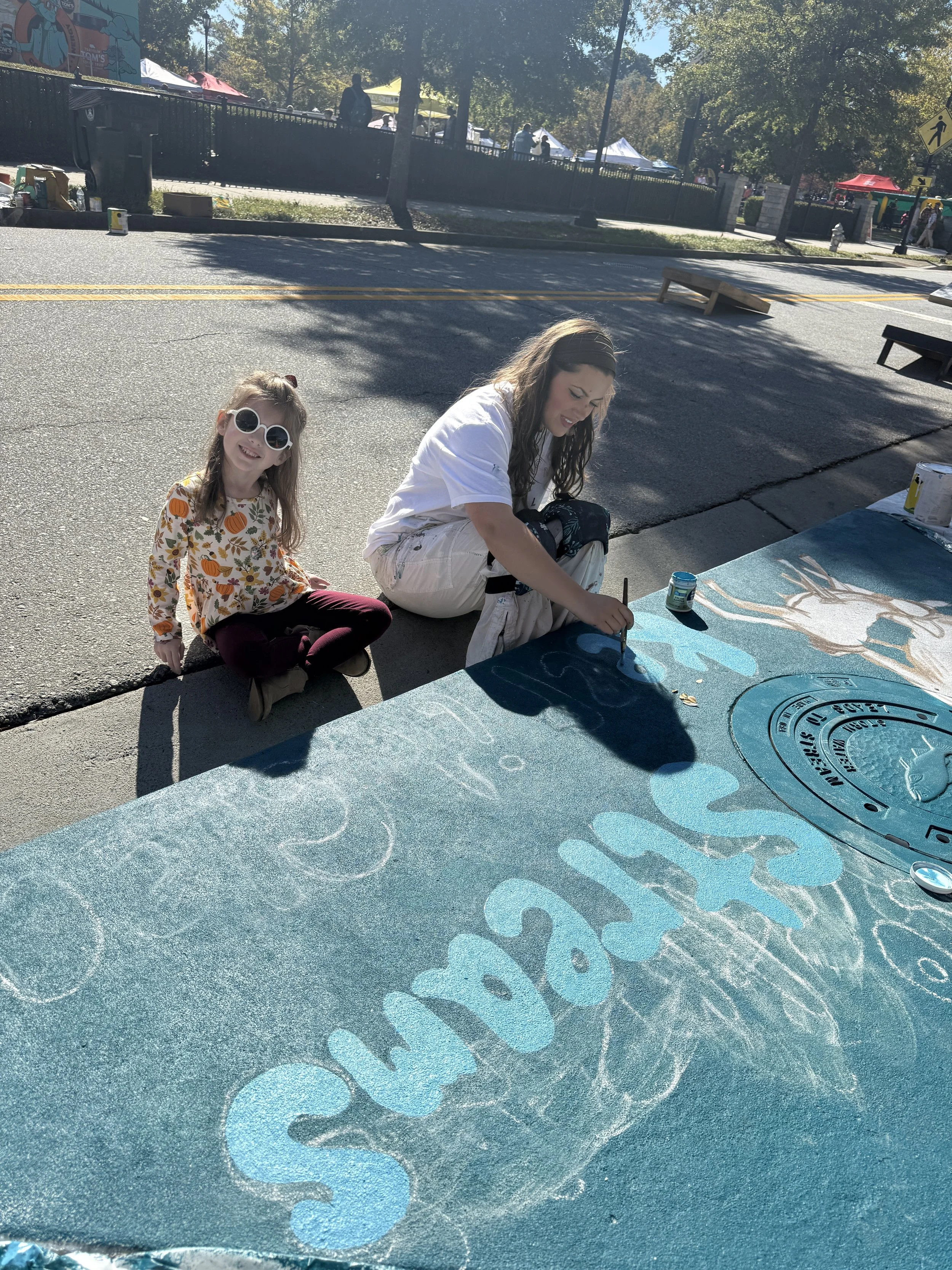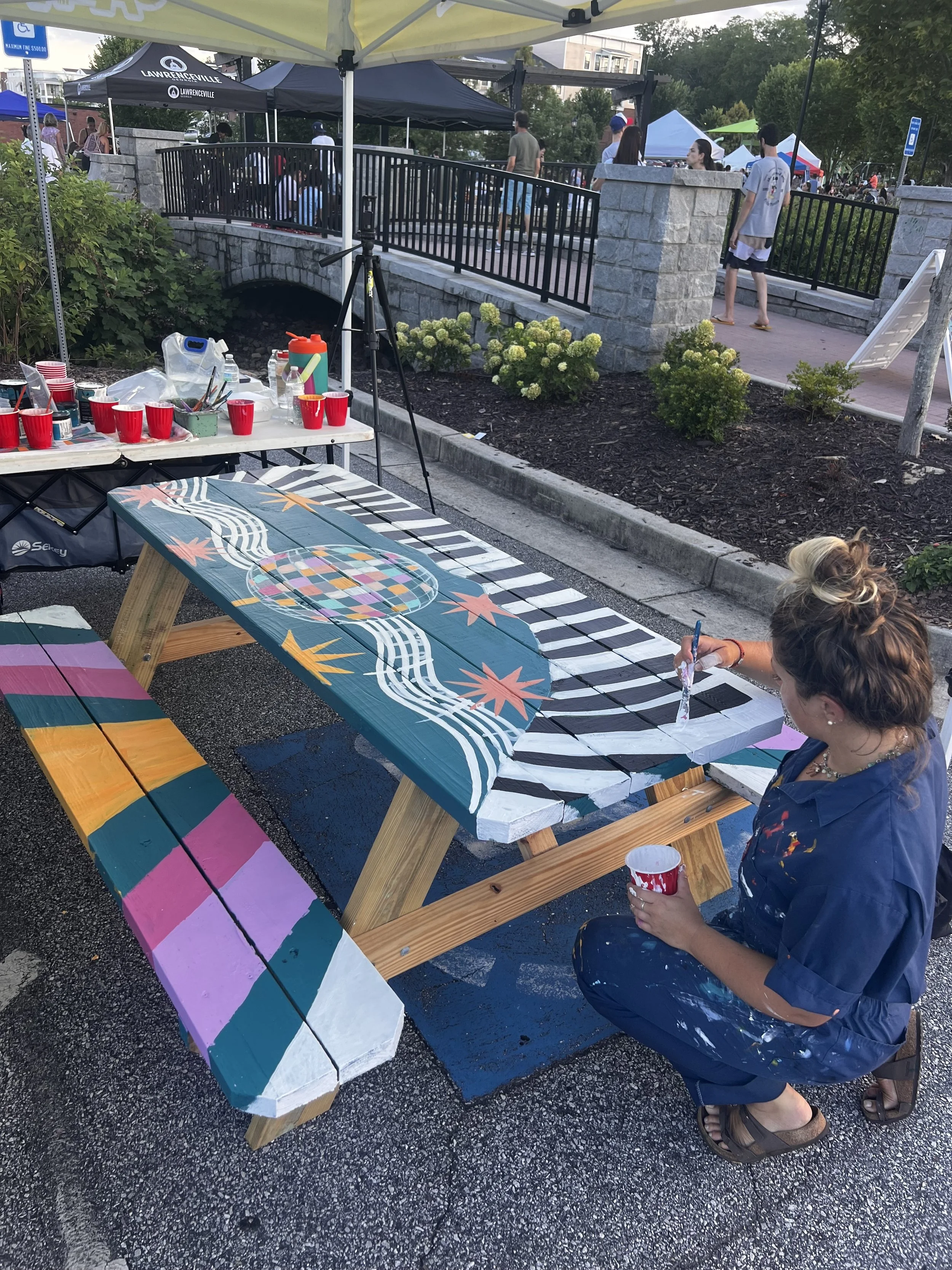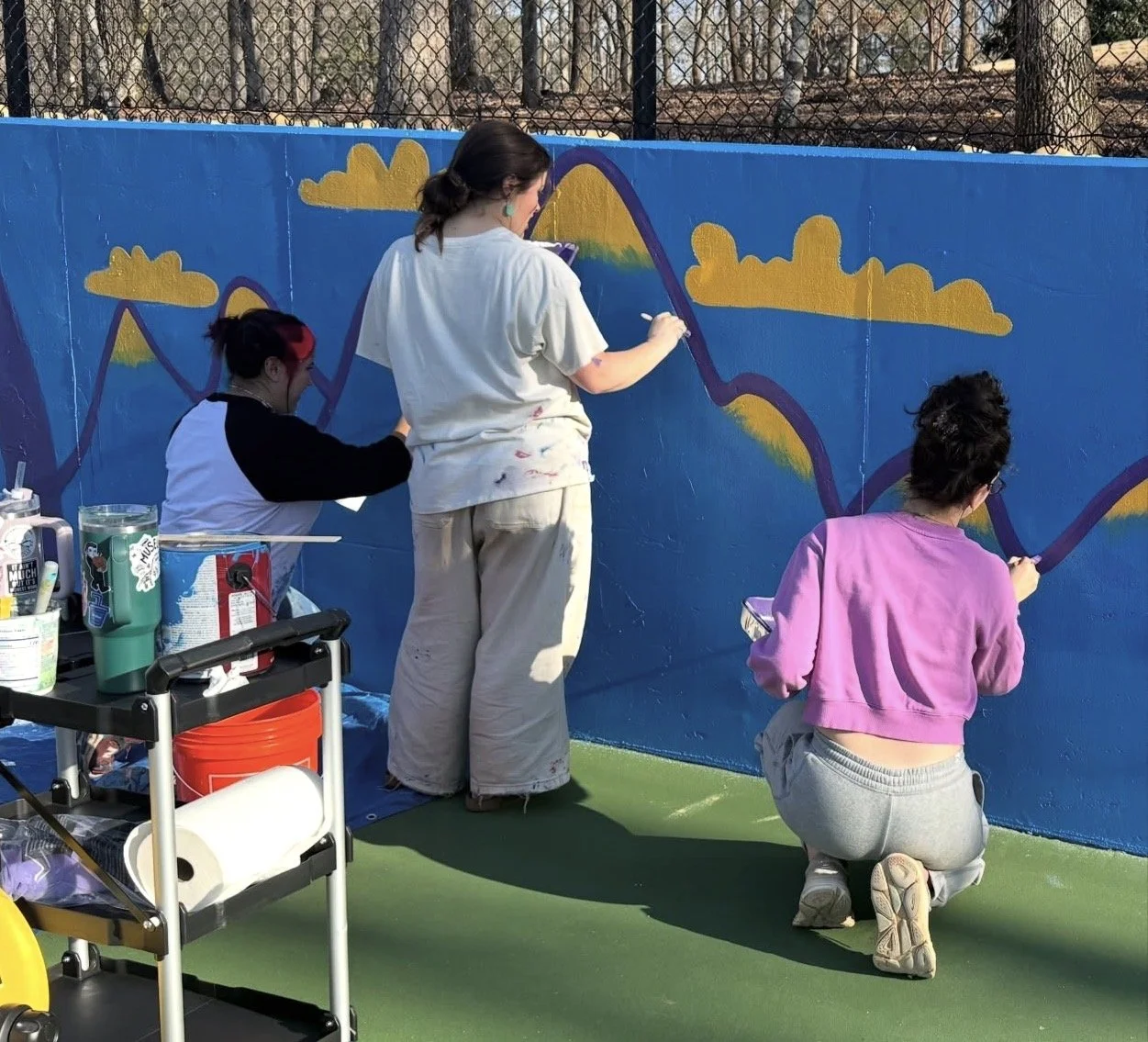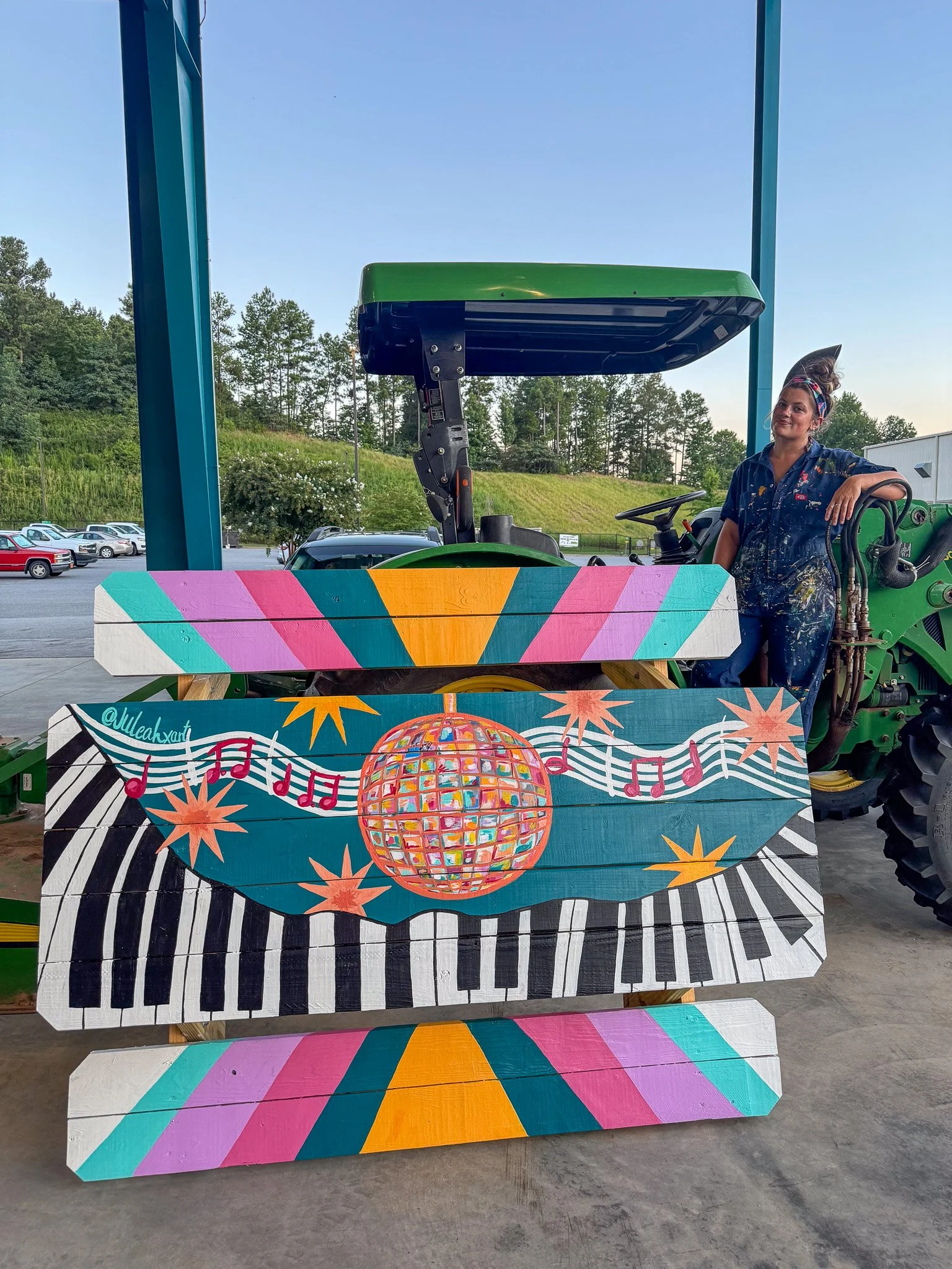 Designed and Painted by the Gail Girls Art Collective (Isabella Martino, Aida Alarcón, Juleah Everglade) and features interactive elements like painted, wood cut-outs that can be moved to different hooks when animals are rotated.