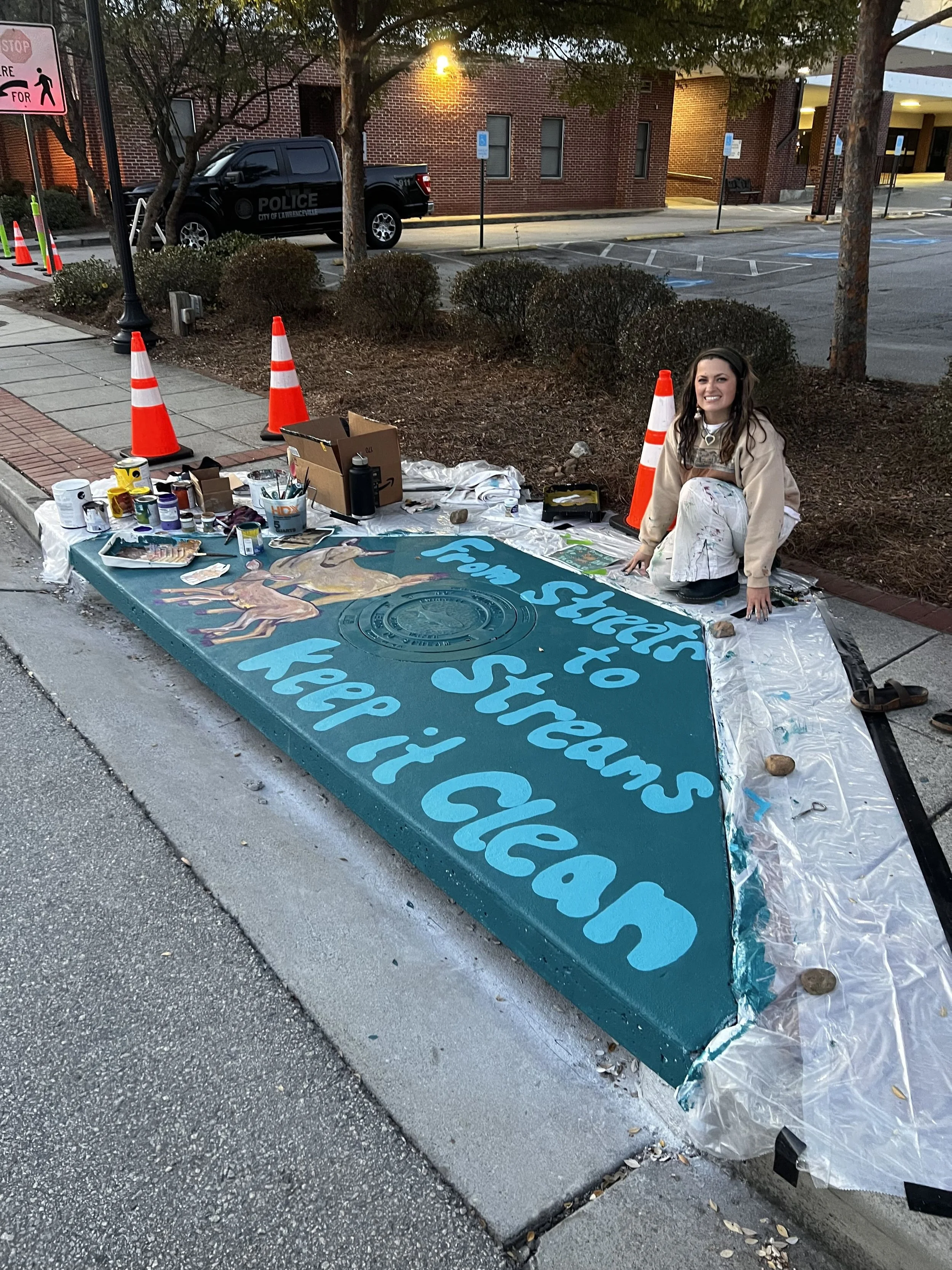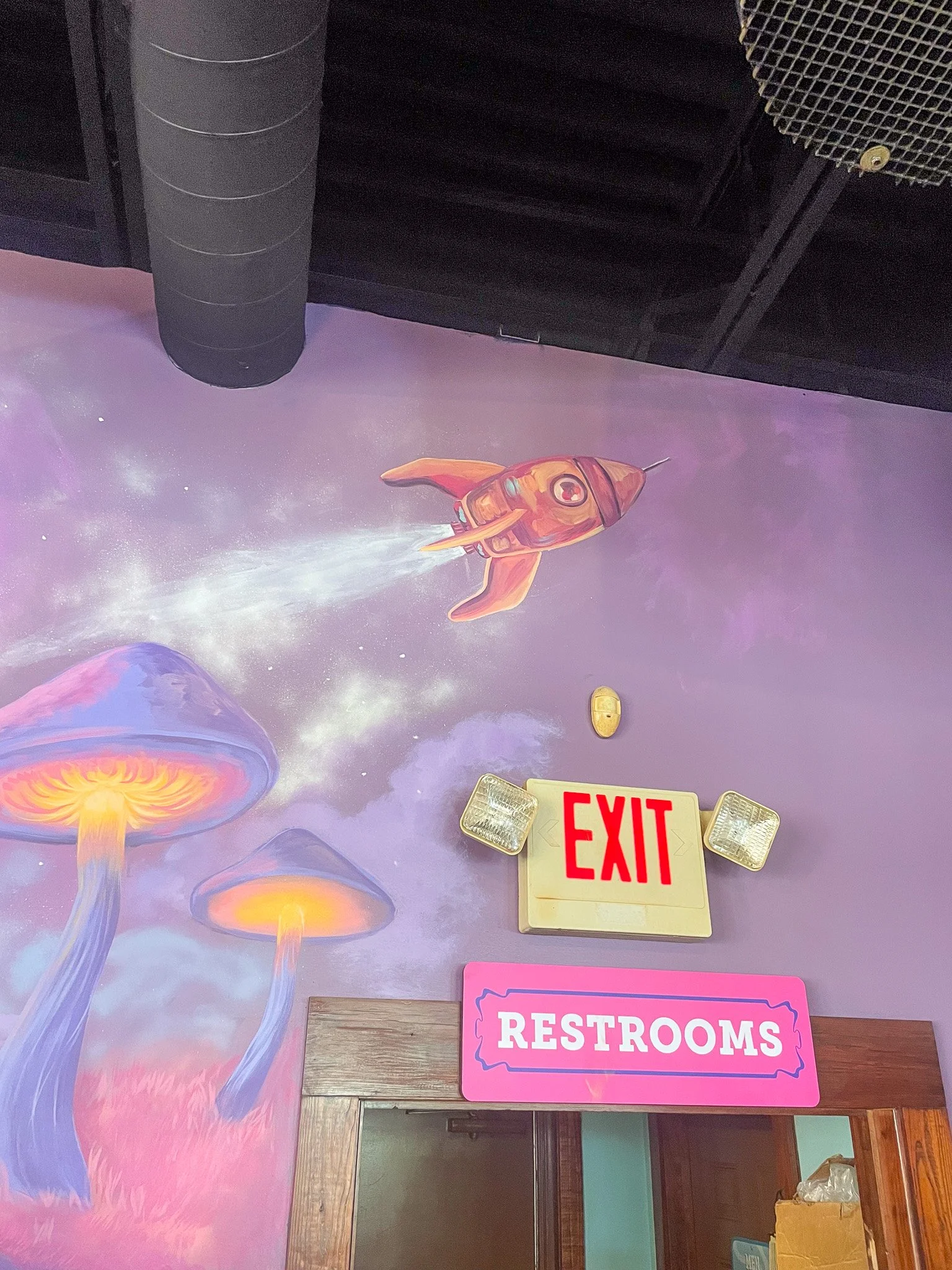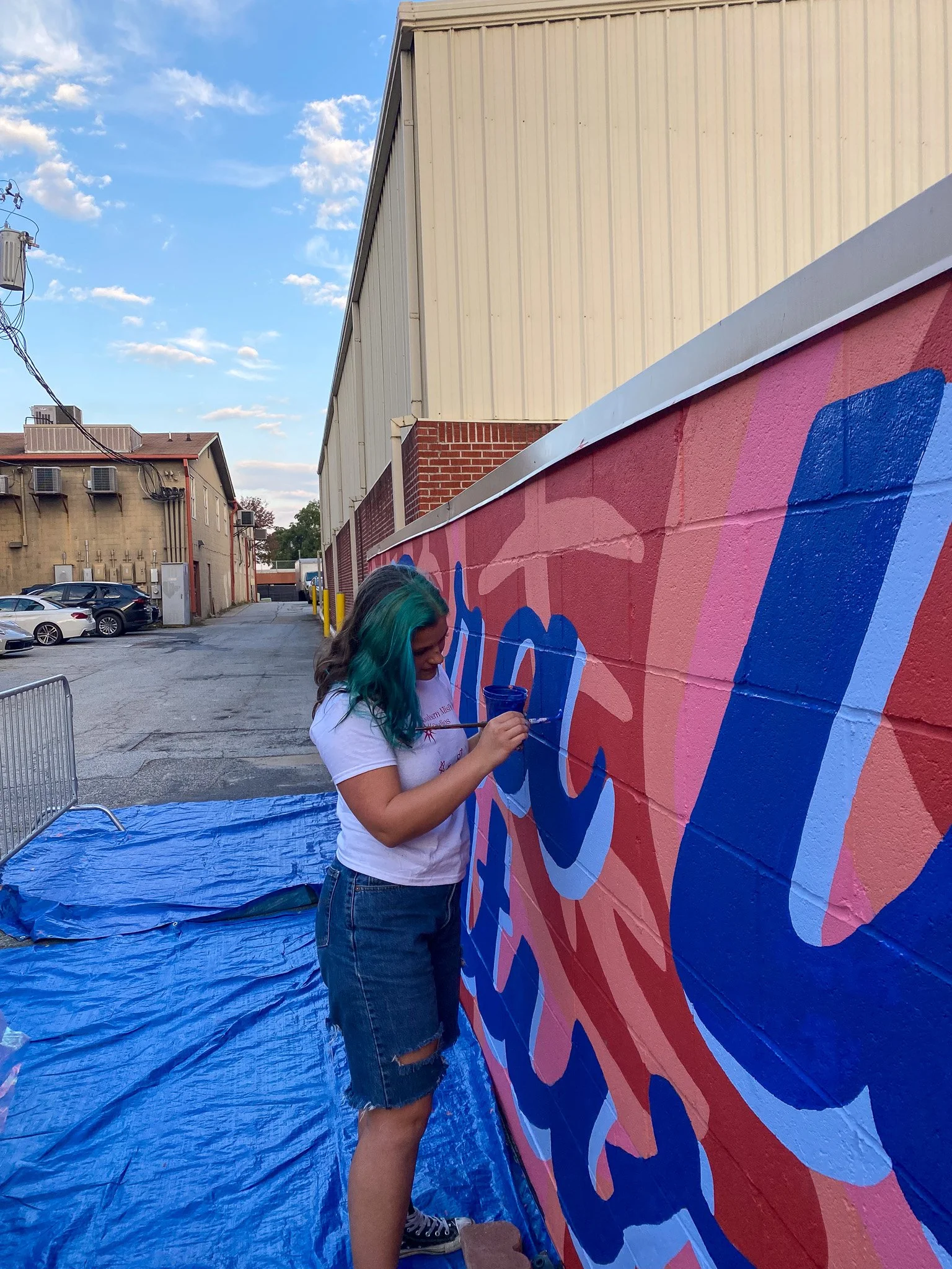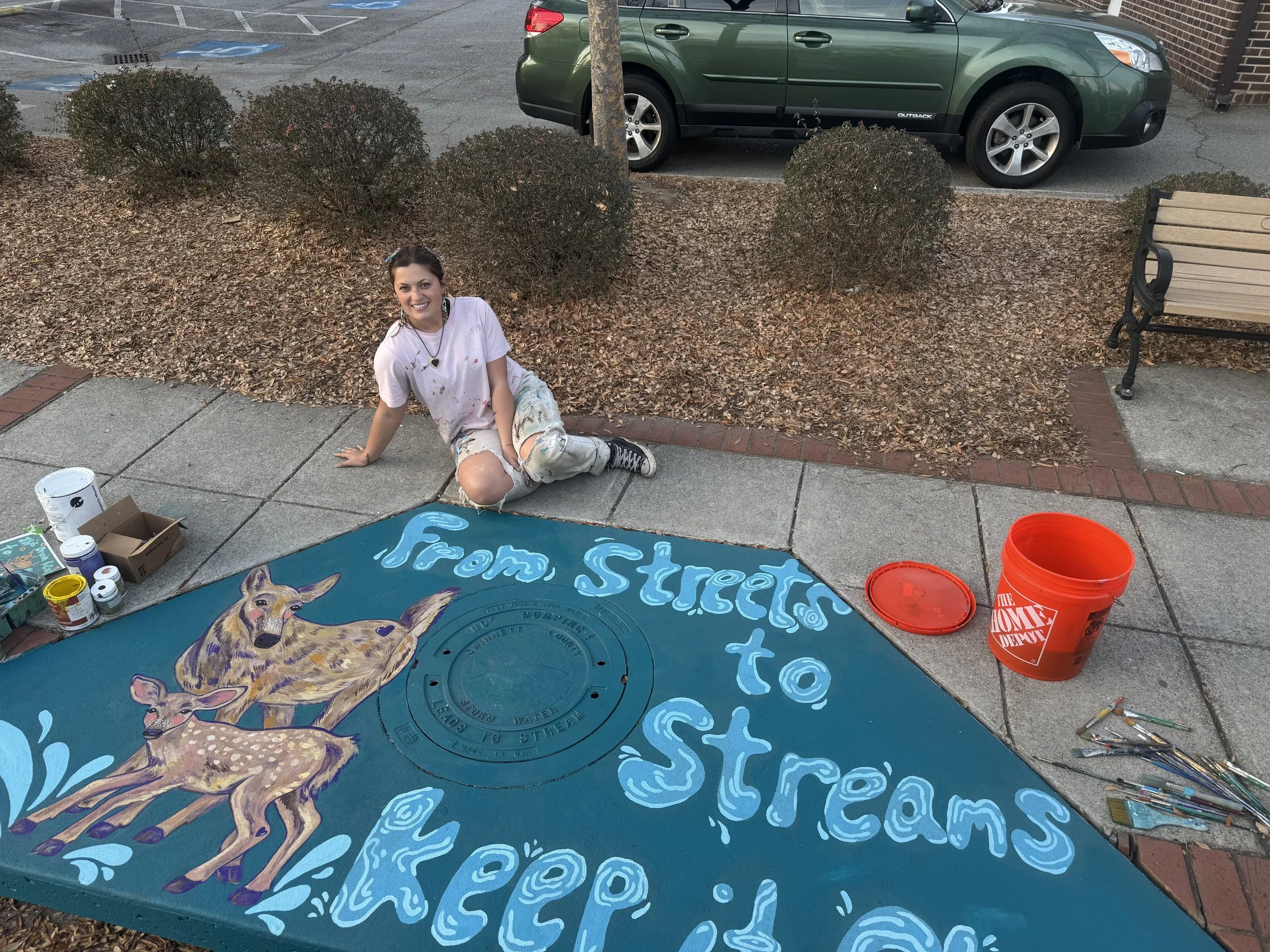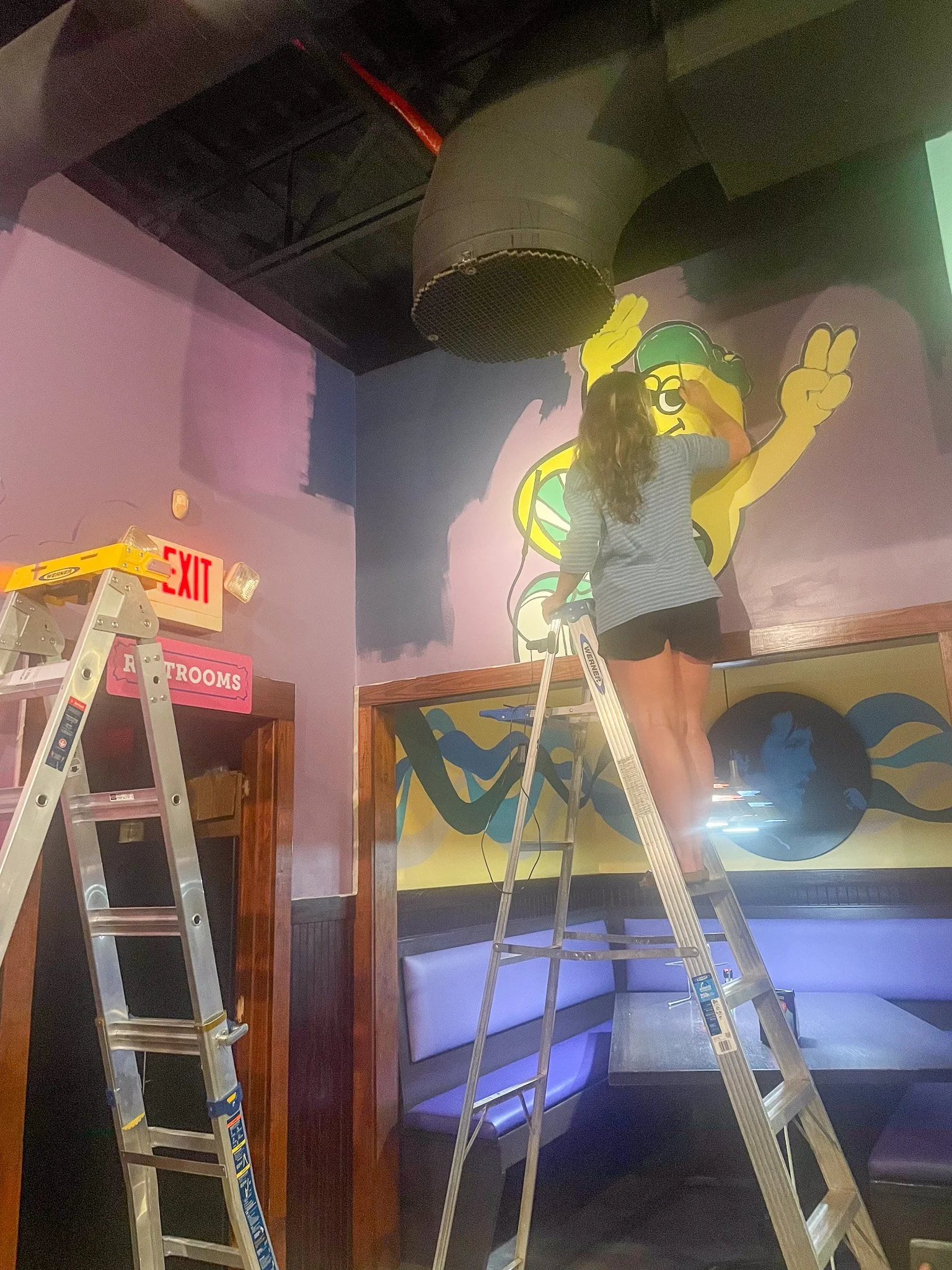 Designed and Painted by the Gail Girls Art Collective (Isabella Martino, Aida Alarcón, Juleah Everglade) and features interactive elements like painted, wood cut-outs that can be moved to different hooks when animals are rotated.